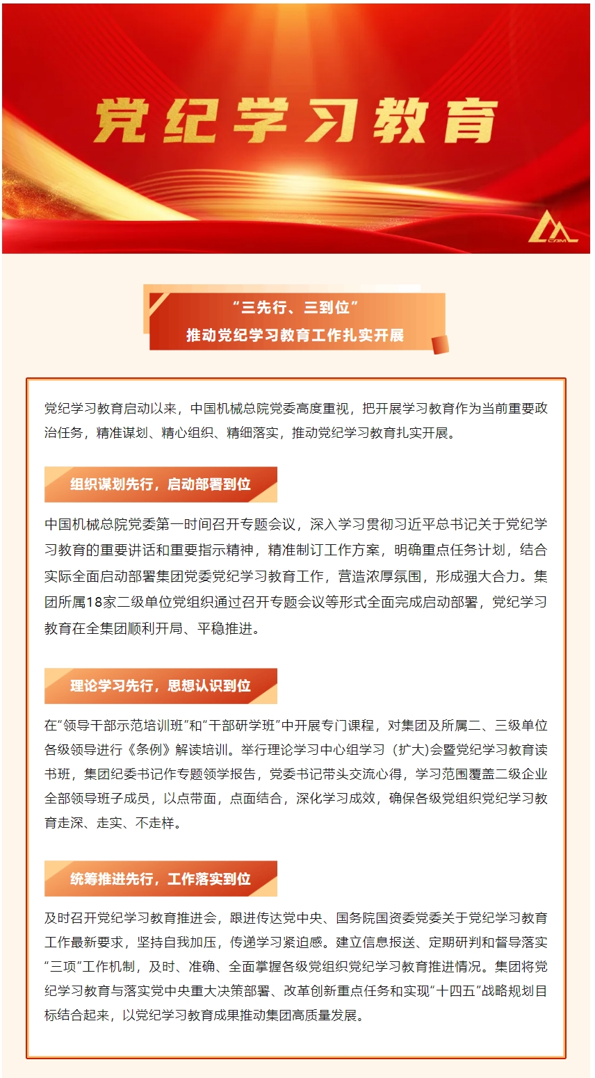 中國機(jī)械總院:三先行 三到位 推動黨紀(jì)學(xué)習(xí)教育工作扎實開展